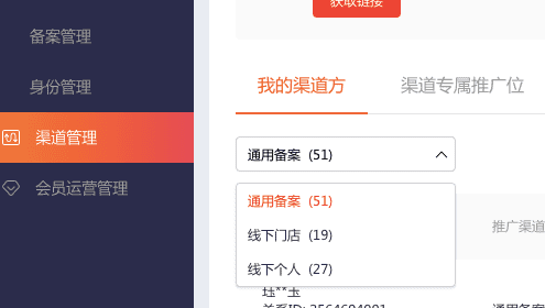 步骤④:了解渠道备案类型说明,根据需要选择对应的邀请方式